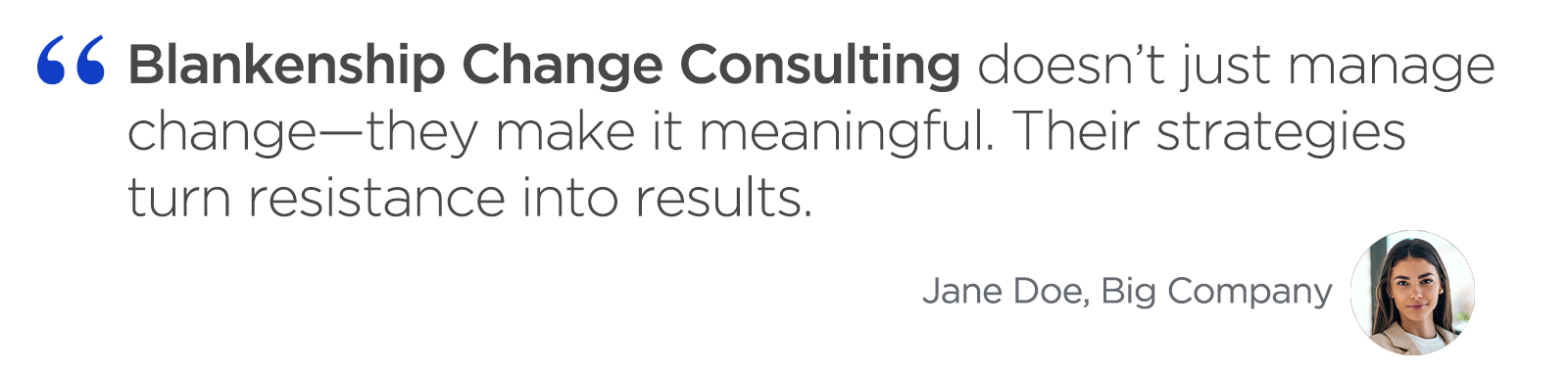 Blankenship Change Consulting helps organizations navigate and embrace change in a variety of ways, always leading with compassion and being mindful of where employees are in their change curve journey.